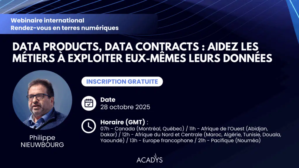 - Et si les directions métiers pouvaient exploiter la donnée de manière autonome, fiable et gouvernée ? C’est l’ambition des data products et des data contracts, au cœur des nouvelles architectures orientées produit. Cette approche transforme les relations DSI - métiers et ouvre la voie à une meilleure appropriation de la donnée au quotidien. Dans ce webinaire, Philippe Nieuwbourg partagera son expertise et ses retours d’expérience pour vous aider à mettre en place une démarche data qui crée réellement de la valeur.