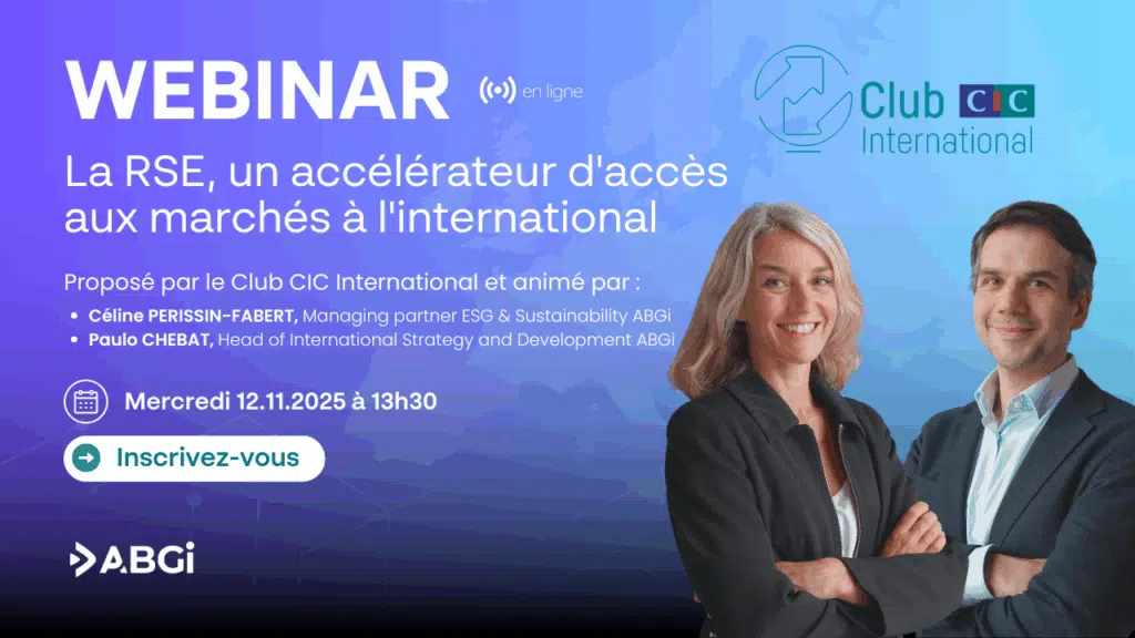 - 🔸 Intégrer la RSE à la stratégie d’entreprise : pourquoi et comment une démarche cohérente renforce la performance et soutient le développement international. 🔸 Panorama des grandes réglementations européennes : revue des nouvelles obligations à venir et de leurs impacts sur les entreprises opérant en Europe. 🔸 Focus international : tour d’horizon des réglementations RSE au Brésil, au Canada et au Royaume-Uni, et leurs effets sur les implantations, exportations et importations. 🔸 Session Q&A : un échange interactif pour répondre à toutes vos questions concrètes.