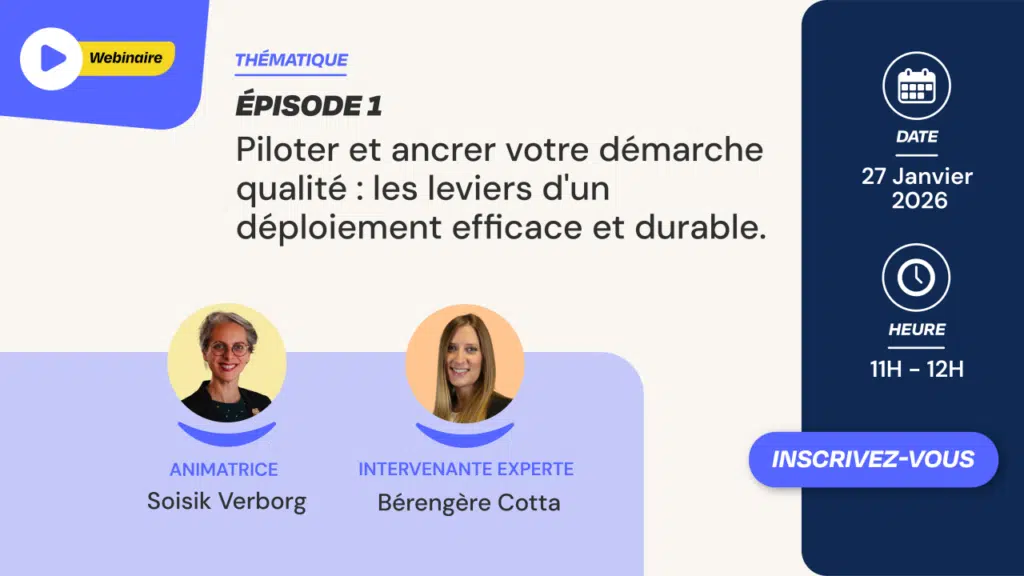 Ce webinaire s’adresse à toute personne impliquée dans des démarches d’amélioration continue ou de qualité au sein d’une organisation. Il concerne aussi bien les professionnels en charge du pilotage de projets que les acteurs souhaitant structurer ou consolider leurs pratiques. Les structures cherchant à donner plus de cohérence à leurs actions ou à inscrire leur démarche dans le temps y trouveront des pistes utiles. Plus largement, il s’adresse à celles et ceux qui souhaitent mieux comprendre les leviers organisationnels et méthodologiques favorisant une qualité durable.