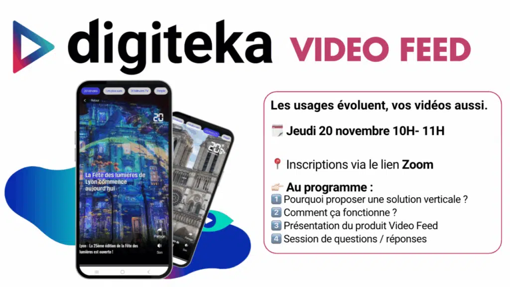 Ce webinaire explore le rôle croissant de la vidéo comme outil central pour renforcer l’engagement et fidéliser les audiences dans le secteur des médias. Il présente des méthodes innovantes pour intégrer la vidéo dans les flux d’information, optimiser l’expérience des utilisateurs et générer de nouvelles sources de revenus. L’événement met en avant une approche pratique pour diffuser du contenu vidéo de manière dynamique et attractive, tout en maximisant l’impact sur l’audience. Les participants découvriront des stratégies pour transformer la consommation d’actualité en expérience interactive et enrichissante, avec un focus sur les technologies récentes et les bonnes pratiques de diffusion.